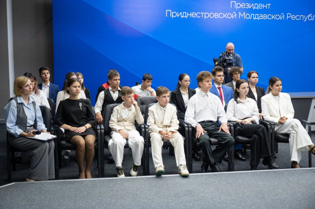 The young people, activists by nature, entered into a dialogue with the first person of the state. They talked about themselves, asked questions, shared plans and ideas. They talked about new technologies, youth employment, participation of Pridnestrovians in various international projects, volunteering, travel, dreams, family and friendship, adolescence and the problem of “burnout”. They discussed what was more appropriate: learning new things or improving existing skills. They discussed the pros and cons of the Unified State Exam and the Bologna educational system. The President said that he prefers exam classics and considers the Soviet approach to organizing the educational process the most effective. The President emphasized at the same time that life is constant study and passing exams, among which school exams are the simplest.