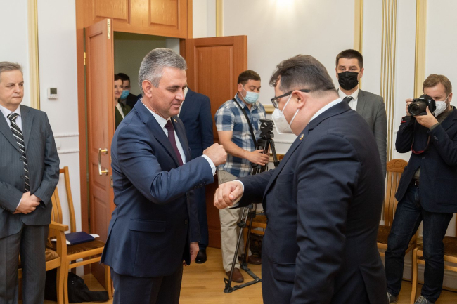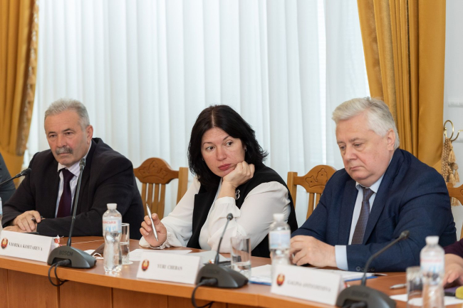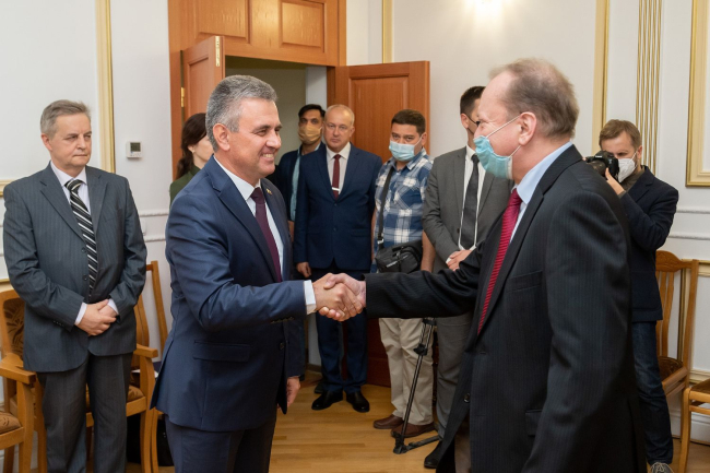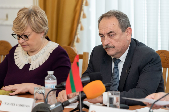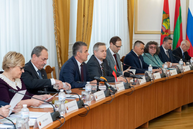 On the Pridnestrovian side in addition to the President there were the Head of the PMR Presidential Administration Sergei Belous, Chairman of the Supreme Council Alexander Korshunov, Vice Speaker of the Pridnestrovian Parliament Galina Antyufeyeva, the PMR Foreign Minister Vitaly Ignatiev and his deputy Alexander Stetsyuk. In addition, State Adviser to the PMR President Anna Volkova, representing the Advisory Assembly of the first Pridnestrovian deputies, and the leadership of public organizations: Vladimir Ladunkin (Public Chamber of the PMR), Yuri Cheban (PPF), Petr Bogutsky (Union of Ukrainians of Pridnestrovie), Viorica Kokhtareva (Union of Russian Communities of Pridnestrovie), Sergei Sandu (Union of Moldovans of Pridnestrovie).