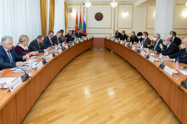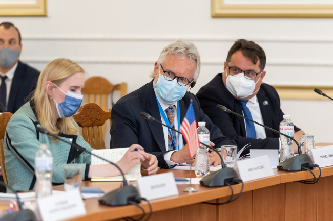 03 Jun, 2021, 14:14The PMR President met in Tiraspol with mediators and observers in the negotiation process. The delegation that arrived in the Pridnestrovian capital is represented in the "3 + 2" format. It is numerous, approximately twenty officials. Some of the arrivals are frequent visitors to the republic, this is the first acquaintance with Pridnestrovie for others. The diplomatic group includes Vitaly Tryapitsyn and Andrey Gorobtsov (RF), Viktor Kryzhanovsky and Artem Torkaenko (Ukraine), Richard Tibbels and Peter Michalko (EU), George Kent (USA), Thomas Mayr-Harting, Claus Neukirch, Anna Lyberg (OSCE) and others.