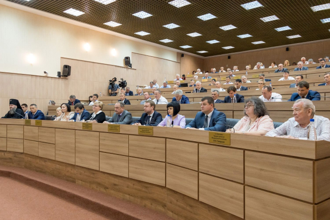 10 Jul, 2019, 12:20The Message of the President to the legislators and the Heads of state authorities and administration is provided for by the Constitution of the PMR. The message is voiced on the eve of the beginning of work on the draft budget of the republic and covers the most important issues of the life of the state. Vadim Krasnoselsky addressed the Government and deputies at the plenary hall of the PMR Supreme Council. Among those invited are the leadership and members of the PMR Government, parliamentarians, senior officials of state administrations of cities and districts of the republic, various departments and organizations, including public ones, as well as the First PMR President Igor Smirnov, and Archbishop of Tiraspol and Dubossary Sawa.