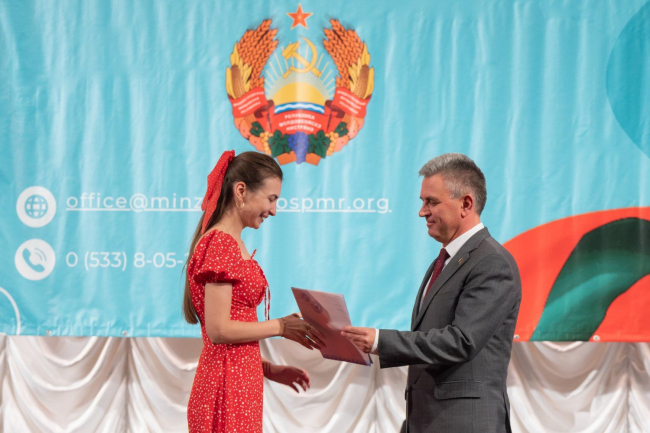 28 Jul, 2023, 16:45Solemn ceremony of awarding diplomas to medical residents took place in the great hall of the Palace of the Republic. This is the first graduation of the advanced educational level of the Medical Faculty of Pridnestrovian State University named after Taras Shevchenko. Postgraduate professional medical education on the basis of the state university was included in the general system in 2021. Graduates of the Faculty of Medicine of PSU were hired as medical residents in various healthcare institutions of the republic and combined further studies with professional activities in the chosen areas. The educational standards of the PMR correspond to the Russian ones and provide for the training of specialists in 46 medical specialties. 62 residents completed the training course this year, and 74 more people continue their studies. The transition from internship to residency was once supported by the President. Vadim Krasnoselsky with his wife was among the honored guests of the festive event today. Today's event is of particular importance for the Krasnoselskys. The daughter of the President is among the first graduates-residents.