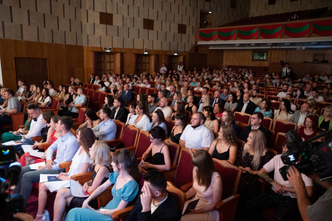 Addressing the heroes of today's solemn event, Vadim Krasnoselsky noted that the path to becoming a doctor is a long one and requires constant self-improvement. The PMR President emphasized the high level of teaching at the medical faculty of the Pridnestrovian State University and expressed gratitude to the mentors of today's and future graduates. The President spoke about the measures taken by the state to develop the health care system of the republic, about modernizing the infrastructure and equipping medical institutions. Vadim Krasnoselsky at the same time focused on the fact that the basis of successful medicine is the professionalism of doctors, their personal qualities and attitude towards the patient.