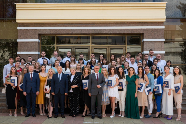 The PMR President Vadim Krasnoselsky, the PMR Government Chairman Alexander Rosenberg, Vice Speaker of the Legislative Body of the Republic Galina Antyufeeva, Minister of Healthcare Kristina Albul, Rector of the State University Vladislav Sokolov took part in the graduation ceremony. The chief doctors of medical institutions of Pridnestrovie, heads of practice, the dean and teachers of the medical faculty of PSU, representatives of the Ministry of Healthcare and relatives of graduates arrived to support the now certified residents.