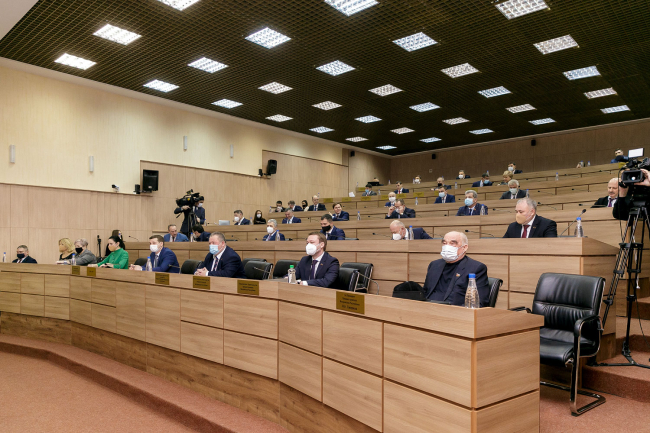08 Dec, 2020, 11:05The Supreme Council of the VII convocation began its work, the composition of which was determined on November 29 during the Single voting day. The first meeting was opened by the PMR President. Vadim Krasnoselsky congratulated on the 30th anniversary of the PMR Supreme Council those gathered in the plenary session hall, recalling that three decades ago it was the deputies of all levels who made the decision to create the Pridnestrovian state, and then parliamentarians formed and continue to improve the legislative framework of the country. Addressing the elected deputies, Vadim Krasnoselsky emphasized that there is also a huge responsibility of the deputy corps to its voters behind the significance of parliamentary activity. The President called on legislators to do everything possible to justify the trust of citizens, recalling that Deputies are the conductors of the people's opinion. The President said that in the context of reduction in the number of deputies and the preservation of the scope of functions and duties of parliamentarians, the load on each of them will increase. The President directed the deputies to constructivism and unity in order to achieve a common goal - the well-being of the citizens of the Pridnestrovian Moldavian Republic.