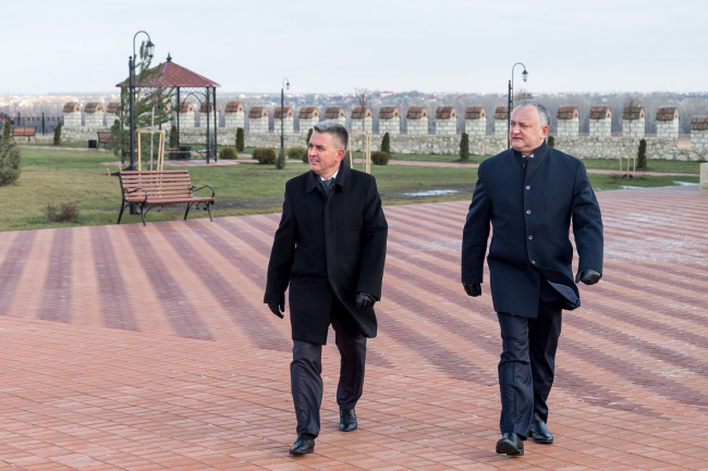 25 Dec, 2018, 12:09Tiraspol, December, 25. /Novosti Pridnestrovya/. The delegations headed by the leaders of the two countries are currently on the territory of the Alexander Nevsky Park of the Bendery Fortress. According to the press service of PMR President, Moldovan guests were told about the construction of the park opened in October. The park zone in Bendery Fortress is a place at the intersection of centuries-old history, Orthodox culture and secular traditions. Vadim Krasnoselski noted that the improvement and creation of conditions for the leisure of people is important for improving the living standards of Pridnestrovians and attracting tourists. According to the President of the PMR, similar cultural centers will appear in the near future in all cities and regions of the republic.