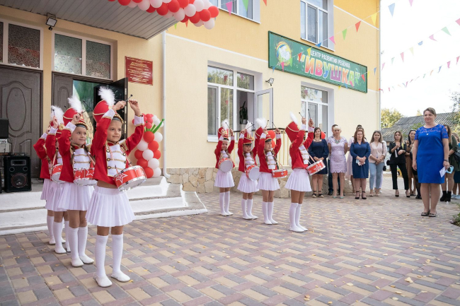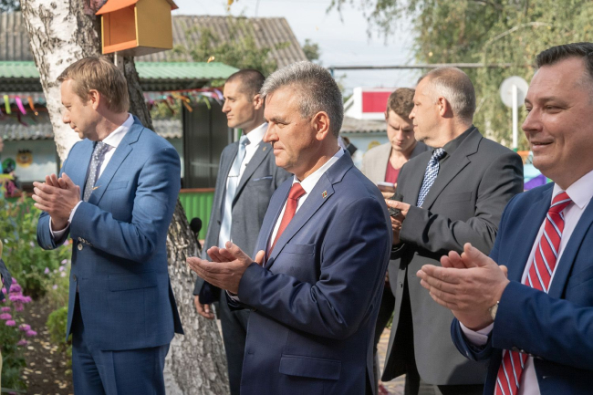 The children's team of the "Ivushka" center has prepared a festive program for the guests. The participants of the event exchanged gifts. The President was presented with hand-made souvenirs, in return he presented a certificate for a dozen sets of furniture for children's rooms.