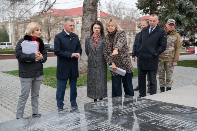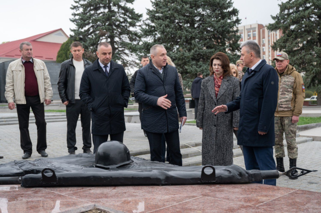 03 Апр., 2025, 14:11The PMR President visited the capital's Memorial of Glory today. Reconstruction is underway there. The complex is expanding. The perimeter remains the same – the content is changing. On the instructions of the President, an exposition was set up here telling about the participation of Tiraspol residents in the Great Patriotic War. The stone slabs contain thematic murals and information, including the names of 1340 Tiraspol residents who died on the fronts of the Great Patriotic War. The central element is a memorial wall, at the base of which is a monument to the Unknown Soldier. It was made at the Elektromash plant of the capital. Specialists are completing the installation. The director of the enterprise Vladimir Trandasir told Vadim Krasnoselsky that the one and a half ton composition is made of 12 segments, the joints of which are almost impossible to detect. The monument is a noble black color. It has 12 layers of coating – 6 layers of primer and 6 layers of paint. The manufacturers assure that it will not need updating for at least a decade. A place has been prepared behind the monument for the reburial of the remains of a Soviet soldier whose name is unknown. That is, it will not just be a monument to the Unknown Soldier, but a real grave of a participant in the Great Patriotic War. The reburial ceremony and the opening of the monument are scheduled for the 11th of April. The President discussed with the head of the administration of Tiraspol Ilona Tyuryaeva the details of organizing the upcoming significant event. They talked about the event scheduled for the 6th of May, which the Tiraspol-Dubossary diocese is preparing to hold at the Memorial of Glory.
