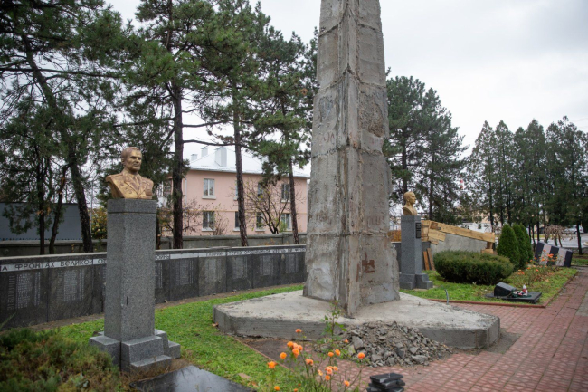 21 Nov, 2024, 16:13Built six decades ago the Memorial of Military Glory on Heroes' Square is being renovated in Bendery. This is the first reconstruction in its history. The funds are being allocated from the capital investment fund. The work began this spring. The legendary ZiS-3 cannons were renovated by May 9, 2024. The major repairs should be completed before the anniversary Victory Day. The central part of the memorial is currently being worked on. The elements made of shell rock have become unusable. They are being cemented and then decorated with granite. The 14-meter obelisk will be renovated. Paths will be laid to the wall behind the monument, which holds the names of the fallen defenders of Bendery. The old bushes blocking the view and approach to this wall will be removed. This is the recommendation of Vadim Krasnoselsky, who visited the site today and discussed the plan for further work with the city leadership and contractors. It was decided that information and art panels telling about the Odessa and Jassy-Kishinev operations will be installed. The Bendery residents names, who died on other fronts of the Great Patriotic War must be immortalized in stone, the President reminded. The city authorities plan to provide audio accompaniment so that visitors to the memorial complex have the opportunity to draw information from several sources at once.