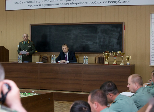 During the meeting, an assessment of the Ministry command's activity during the reporting period was also given. «As for today, I give a good grade to the Defence Ministry command. In 2014−2015, it was done a lot to increase efficiency of the Pridnestrovie's army in our difficult conditions. There are still some problems, and, of course, we will solve them. The most important thing is the fact that people manifest a desire to serve the Pridnestrovian state — and they serve with dignity», the Commander-in-chief Yevgeny Shevchuk noted. «The Pridnestrovie's army is a credible deterrent for any extremism. Existence of an efficient army provides stability in the republic».