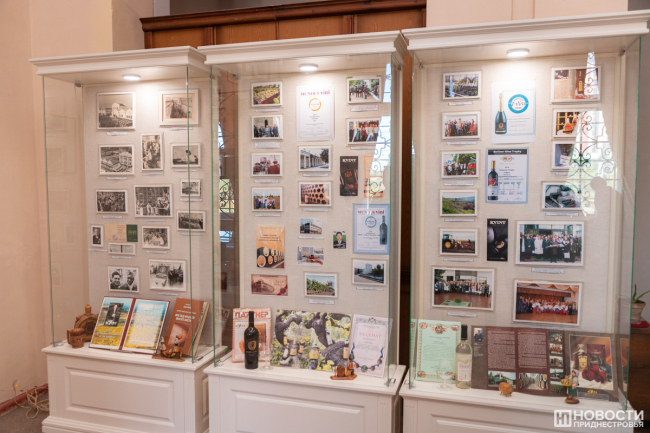 Кроме продукции предприятия, на выставочных стендах были представлены и фотодокументы, повествующие о его истории. 125 лет тому назад всё начиналось с того, что в Тирасполе был организован цех № 9 по переработке в крепкие напитки приобретённого у населения виноматериала. Самый старый снимок датируется 1932 годом, на нём запечатлены сельчане, привезшие на подводах сырьё для сдачи его на тираспольский завод, входивший в картель винопроизводителей МАССР «Молдвинтрест».