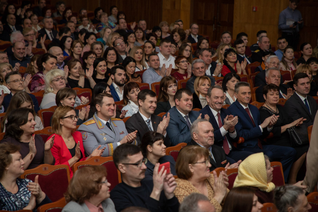 Станислав Касап напомнил: «2019-й был годом позитивных преобразований и перемен к лучшему. Были отремонтированы детские сады и школы, больницы и коррекционные учреждения, преобразились наши города и сёла. Заметно движение вперёд в различных сферах: экономике, здравоохранении, культуре, просвещении и социальной политике. И всё это стало возможным в том числе благодаря вам всем, кто стоит сегодня на сцене».