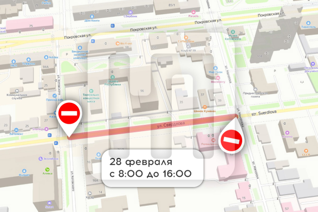 28 февраля часть столичной улицы Свердлова перекроют