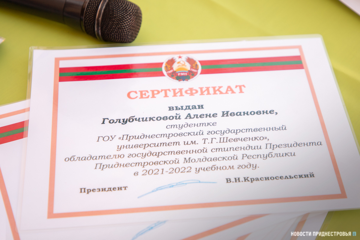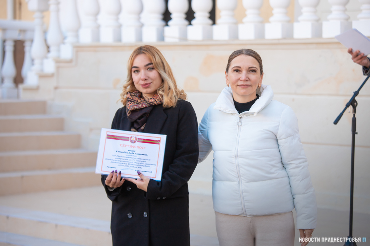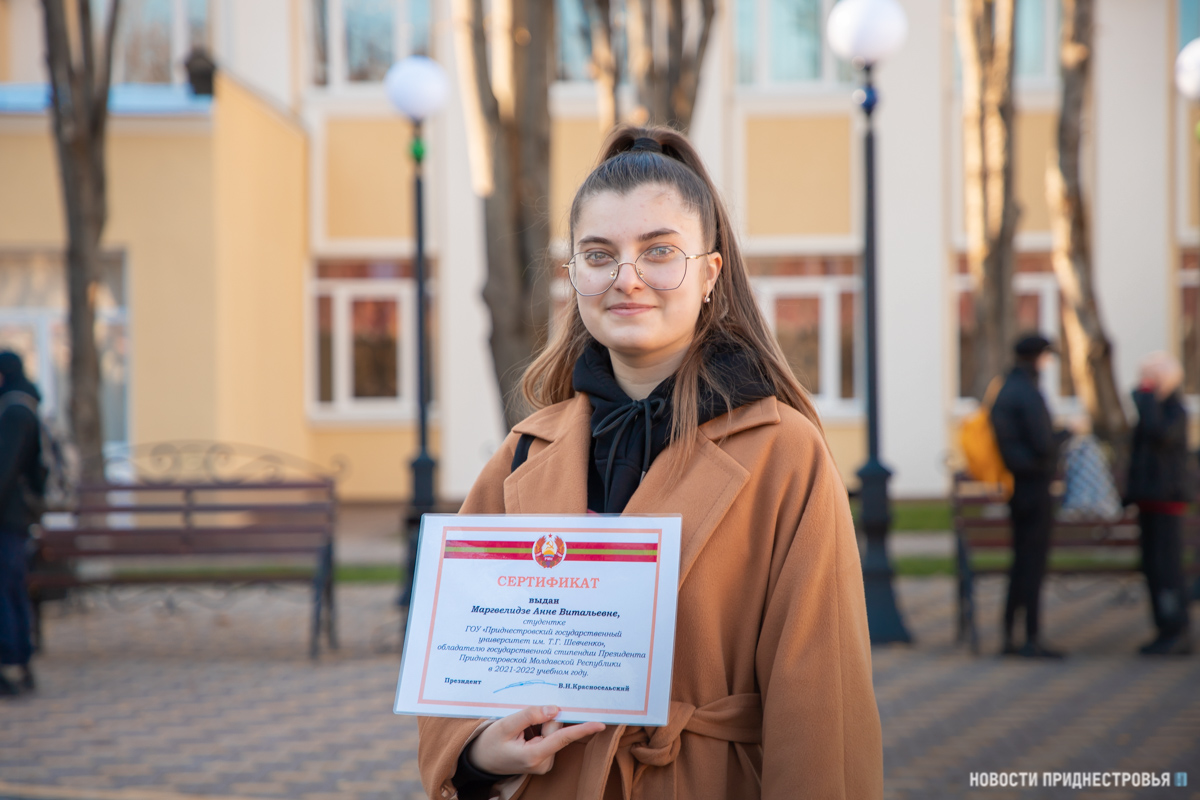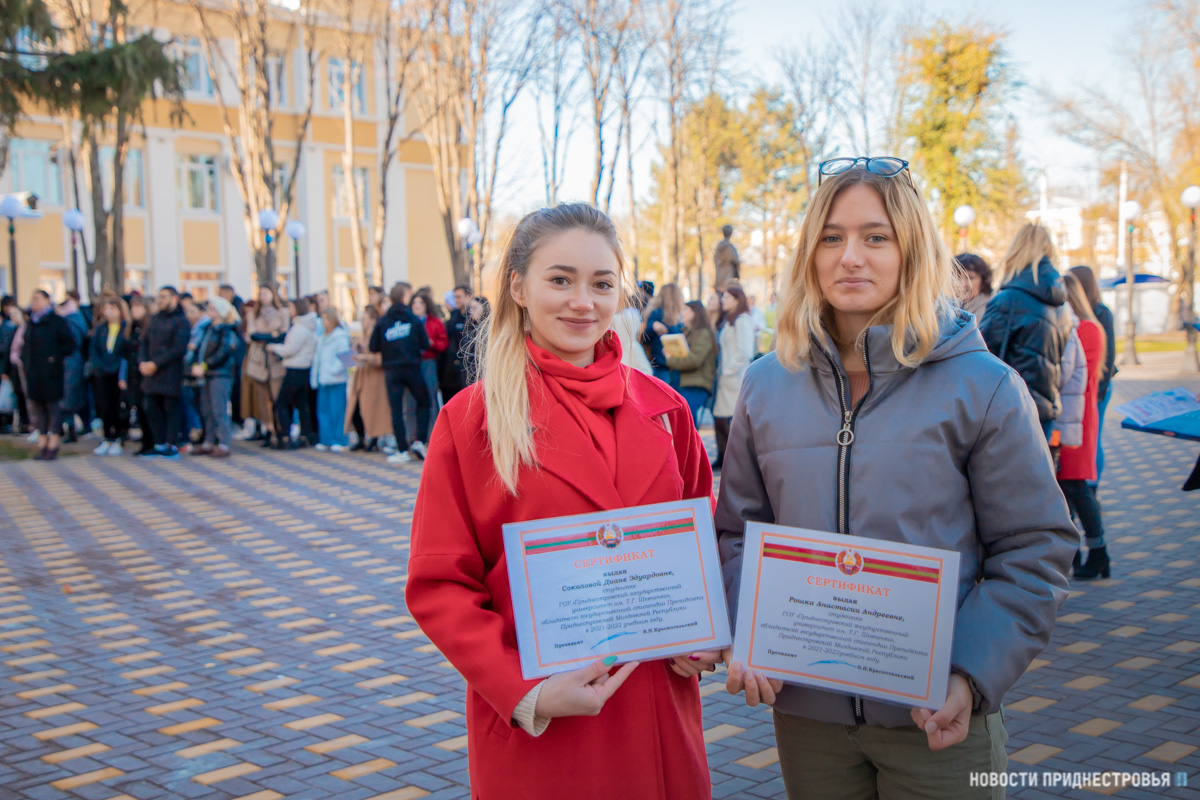 Самым активным отличникам учёбы сегодня вручили сертификаты обладателей стипендии Президента ПМР. В этом году 28 студентов Приднестровского госуниверситета стали получателями денежного вознаграждения от главы государства. С таким достижением молодых людей поздравила первый проректор ПГУ Лариса Скитская.