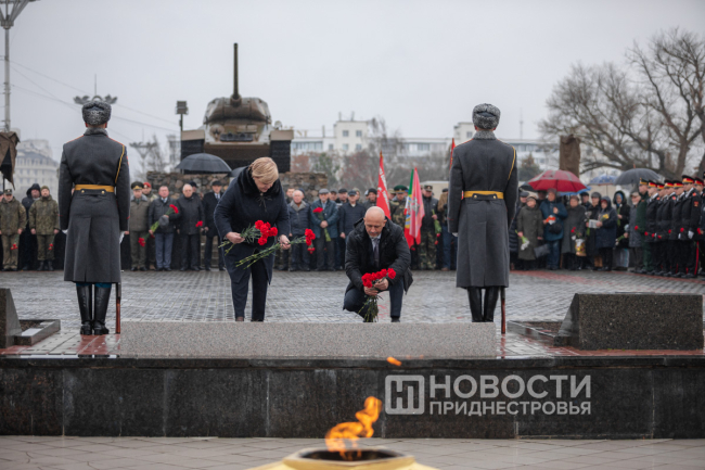В церемонии возложения приняли участие руководители госадминистрации и горрайсовета, депутаты, ветераны Народного ополчения, защитники Приднестровья и представители общественности.