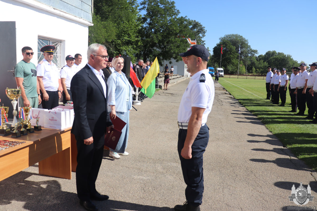 Потом эпицентром событий стало футбольное поле. Первый символический удар по мячу нанёс министр внутренних дел, открыв тем самым турнир. И команды приступили к матчам. По итогам состязаний третье место заняли сотрудники ОГАИ г. Рыбница. Второй стала сборная инспекторов ГАИ из Слободзеи. Победу одержала команда Управления ГАИ МВД ПМР. Участникам турнира вручили почётные дипломы, призёрам – медали и памятные подарки, а чемпионам – кубок.