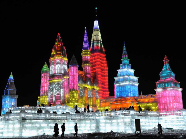 Настоящий город под названием «Мир снега и льда» раскинулся на территории более 600 тыс. кв. м в центре Харбина и включает в себя знаменитые строения со всего мира - всего свыше 2 тыс. экспозиций, выполненных изо льда. Каждая скульптура подсвечена с помощью разноцветных прожекторов, пишет ТАСС.