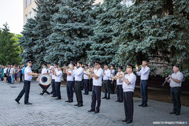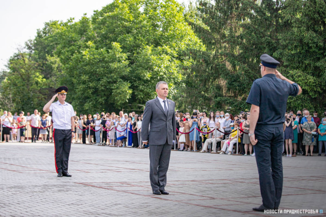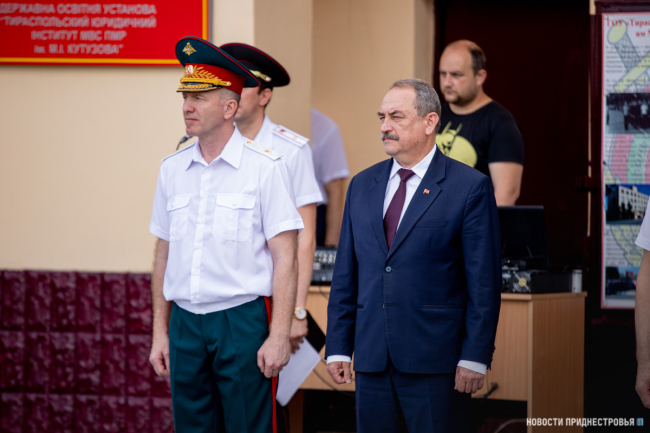 Тирасполь, 25 июня. /Новости Приднестровья/. Выпускникам Тираспольского юридического института МВД ПМР им. М. И. Кутузова торжественно вручили дипломы об окончании учебного заведения. В мероприятии участие приняли Президент ПМР Вадим Красносельский, председатель Верховного Совета Александр Коршунов и первый Президент ПМР Игорь Смирнов.