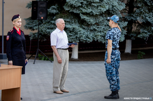 Среди поощряемых выпускников Владимир Баховцев. Институт он закончил с красным дипломом. Молодой человек рассказал, что выбирать профессию и учебное заведение долго не пришлось. Его отец и брат работали в правоохранительных органах, Владимир пошёл по их стопам. Он планирует работать в отделе дознания тираспольского УВД, где будет расследовать уголовные дела.
