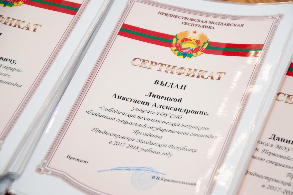 68 молодых приднестровцев стали обладателями сертификатов на получение президентской стипендии