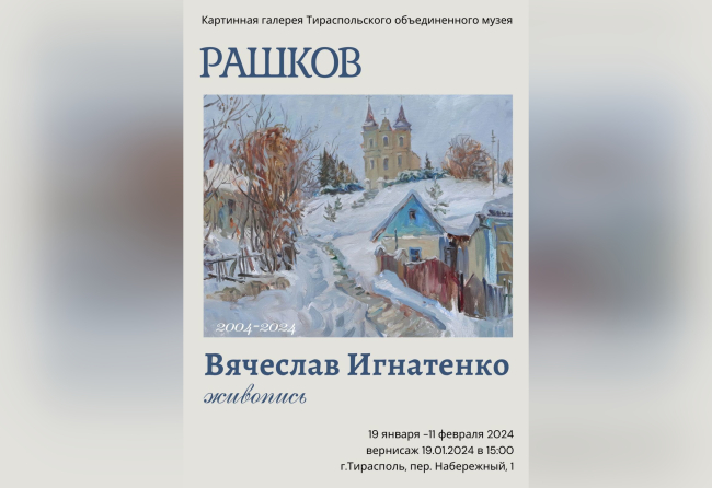 Тирасполь, 15 января. /Новости Приднестровья/. 19 января в 15 часов в Тираспольской картинной галерее будет торжественно открыта персональная выставка Вячеслава Игнатенко, члена Союза художников Молдовы и Международной ассоциации художников, заслуженного деятеля искусств РМ.