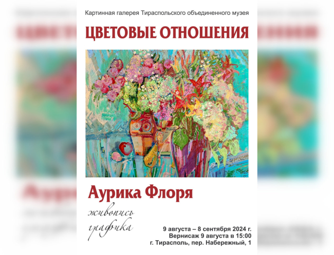 Тирасполь, 8 августа. /Новости Приднестровья/. В Тираспольской картинной галерее 9 августа состоится открытие выставки «Цветовые отношения» приднестровской художницы Аурики Флоря.