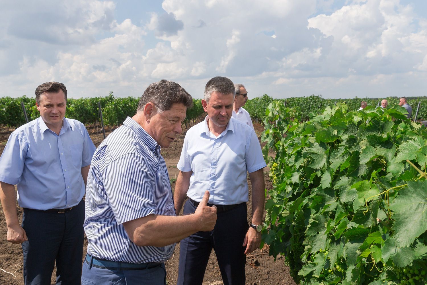 Глава государства, министр сельского хозяйства и природных ресурсов, представители руководства района и завода говорили в ходе экспедиции по виноградникам об исторически сложившейся роли виноградарства в нашем крае. Только на квинтовских угодьях в сезон занято 540 человек. Плюс постоянно трудоустроенные сотрудники завода.