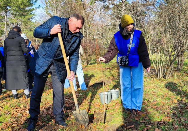 Глава госадминистрации и волонтеры высадили деревья сакуры