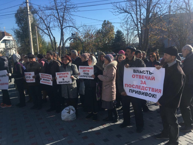 Акция протеста в Комрате: родители митингуют против вакцинации