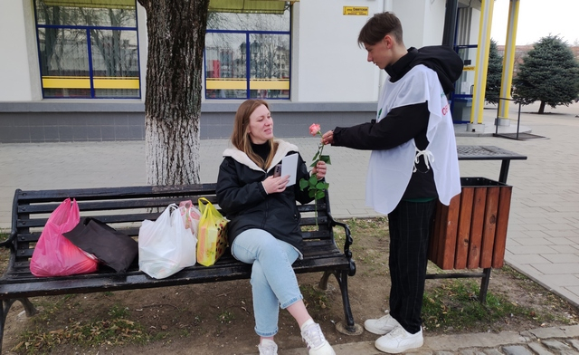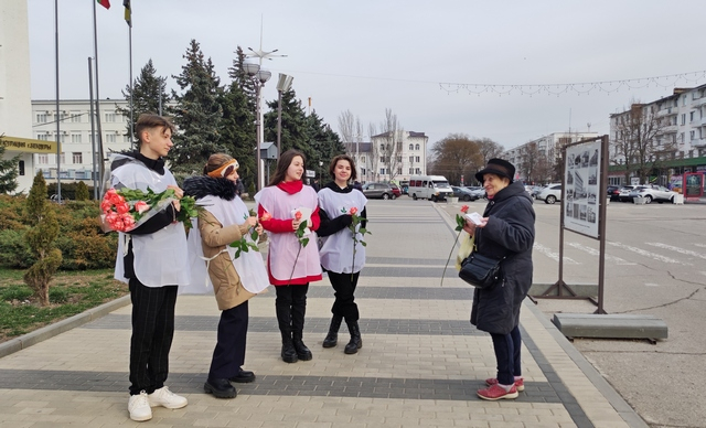 Активисты «Молодёжного Обновления» провели акцию «Дарите женщинам цветы»