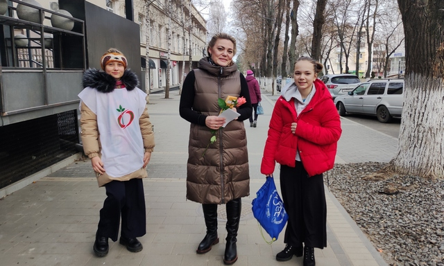 Бендеры, 8 марта. /Новости Приднестровья/. Активисты движения «Молодёжное Обновление» в канун 8 Марта провели акцию «Дарите женщинам цветы».
