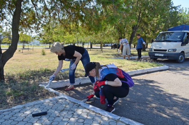 Участники акции побелили бордюры, собрали мусор и сухую траву. Такое мероприятие в преддверии празднования важной исторической даты проводится уже не первый год.
