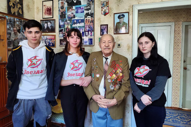 Тирасполь, 23 февраля. /Новости Приднестровья/. По случаю Дня защитника Отечества активисты молодёжного движения «Звезда» посетили ветерана Великой Отечественной войны Михаила Навроцкого. В гости пришли с цветами и тортом. Михаил Иванович рассказал ребятам интересные факты из своей биографии и истории военного времени.