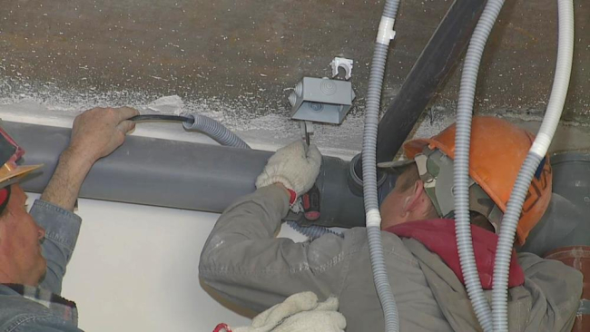 Как рассказал начальник участка Михаил Граур, работы по подведению инженерных коммуникаций к зданию выполнены полностью, сейчас идёт их монтаж и прокладка внутри помещений.