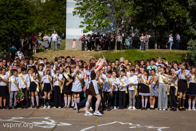 Бендеры, 25 мая. /Новости Приднестровья/. В этом году в бендерской средней школе № 16 только один выпускной класс: в 11 «А» учатся 26 мальчишек и девчонок. К своей последней школьной линейке они готовились несколько месяцев. Одиннадцатиклассницы надели школьную форму советских времен. Коричневые платья, белые фартуки и банты – как символ уходящего детства. По традиции ребята станцевали школьный вальс, сообщает пресс-служба Верховного Совета.