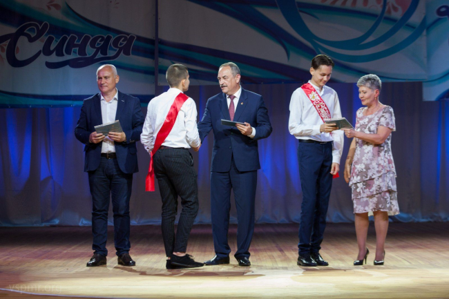 Аттестаты, медали и благодарственные письма выпускникам вручали председатель Верховного Совета, начальник управления жилищно-коммунального хозяйства Сергей Юрецкий и другие представители руководства города.