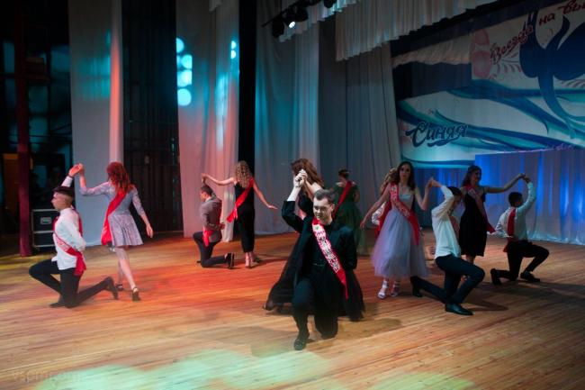 После получения аттестатов ребята на сцене исполнили прощальный вальс, а на улице выпустили в небо голубые шары и загадали желания.
