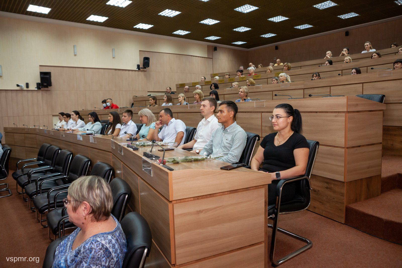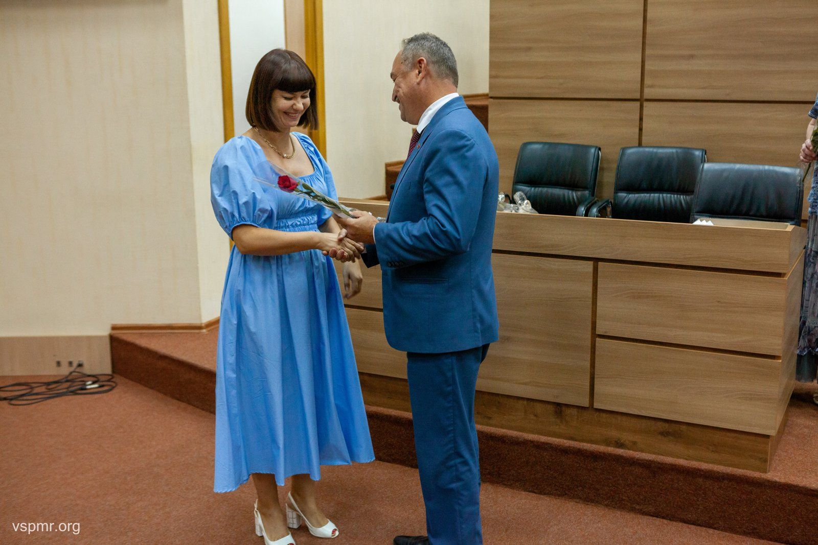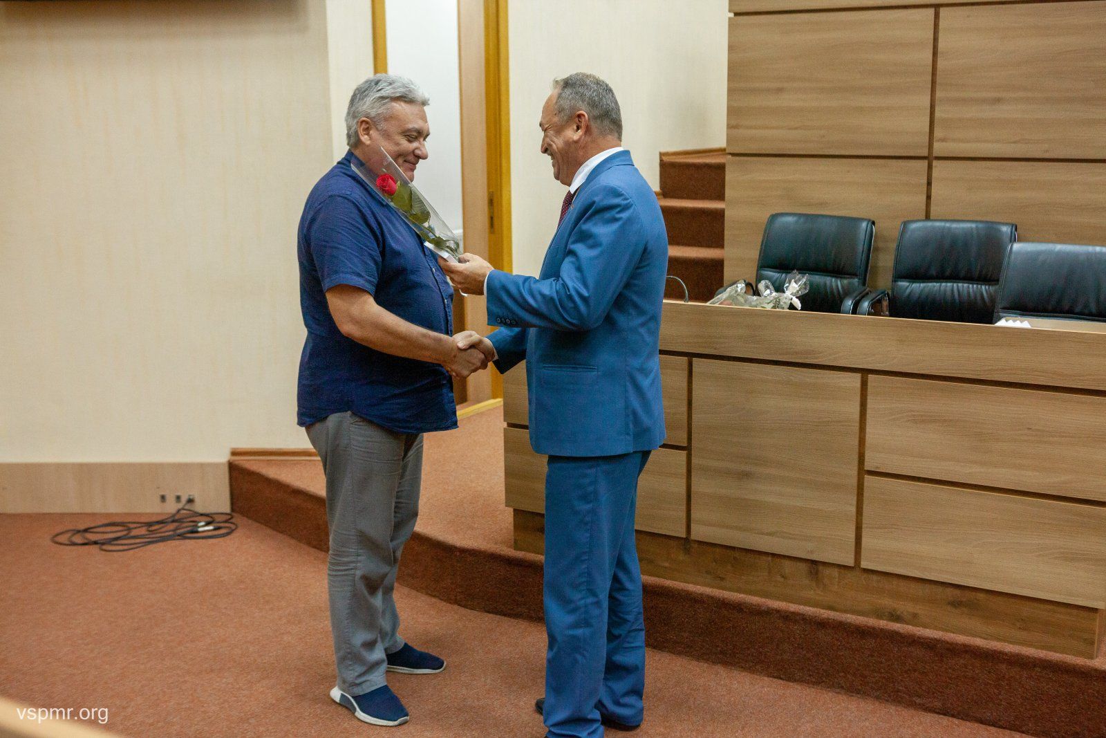 Председатель Верховного Совета вручил 20 сотрудникам Аппарата парламента и помощникам депутатов государственные награды: медали, грамоты и благодарственные письма Президента ПМР. Спикер парламента нацелил сотрудников Аппарата ВС ПМР на дальнейшую плодотворную работу, направленную на развитие и процветание республики.