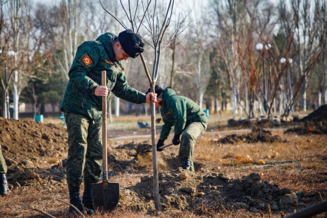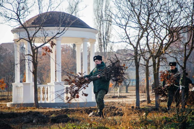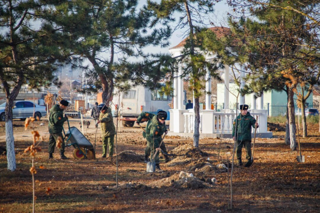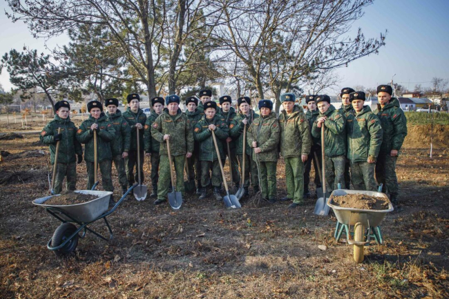 Тирасполь, 27 ноября. /Новости Приднестровья/. Курсанты Тираспольского Суворовского военного училища принимают участие в озеленении Тирасполя. Сегодня они посадили 60 саженцев лип, берёз и платанов и заложили «Аллею выпускников» в Екатерининском парке, сообщает пресс-служба Министерства обороны.