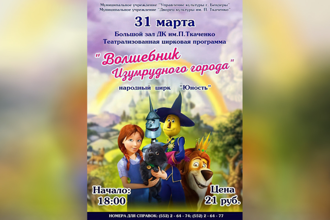 30 Мар., 2022, 17:3118:00 Театрализованная цирковая программа «Волшебник Изумрудного города», народный цирк «Юность»