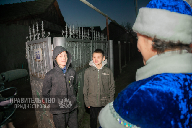 Новогодний экипаж высшего органа исполнительной власти отправился по районам республики и поздравил детей из пяти семей. Две из них проживают в Рыбницком районе.