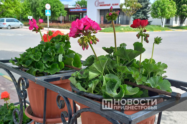 «Мы готовим город к праздникам, чтобы у нас было красиво. В этом году мы решили выставить 54 горшка с геранью. Эти цветы красивые, они все крупные, разноцветные. Королевская герань должна цвести всё лето. Раньше на вертикальных арках мы устанавливали петуньи и хризантемы», - подчеркнула главный озеленитель дубоссарского коммунального хозяйства Елена Котляр.