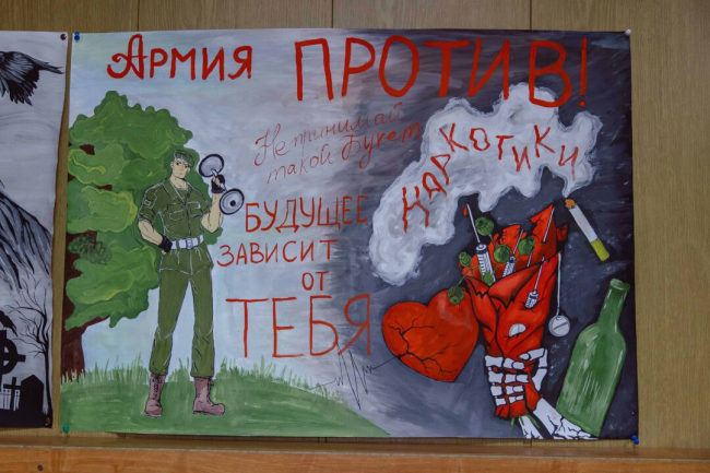 Посредством творчества военнослужащие выражают собственную позицию относительно глобальной проблемы современного общества – употребления наркотических веществ.