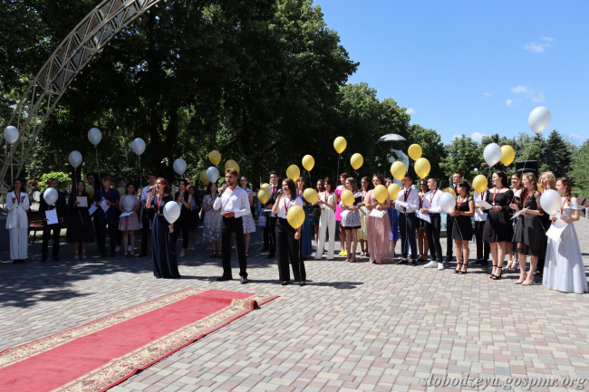 Обращаясь к выпускникам, глава госадминистрации Слободзеи Василий Тищенко отметил, что не случайно начало торжественного мероприятия проводится именно на Аллее Славы.