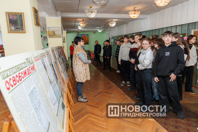 Тирасполь, 18 февраля. /Новости Приднестровья/. Приднестровских школьников продолжают знакомить с историческим наследием нашего края. В Центральной городской библиотеке Тирасполя сегодня дважды проводили экскурсию для учащихся школ. Речь о баннерной выставке «Приднестровье. 1944. Освобождение».