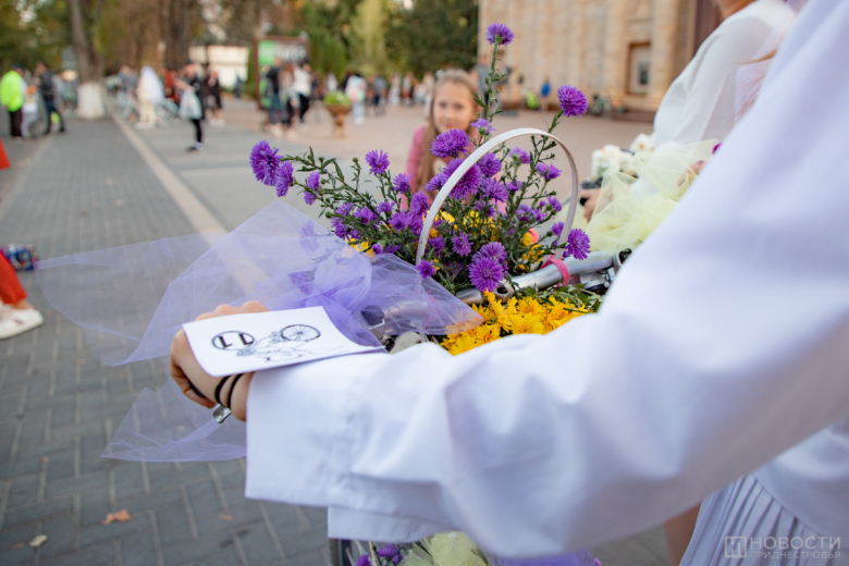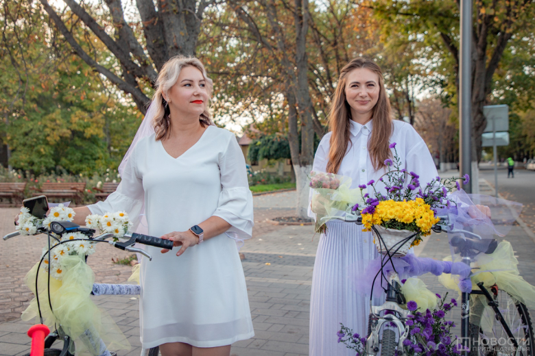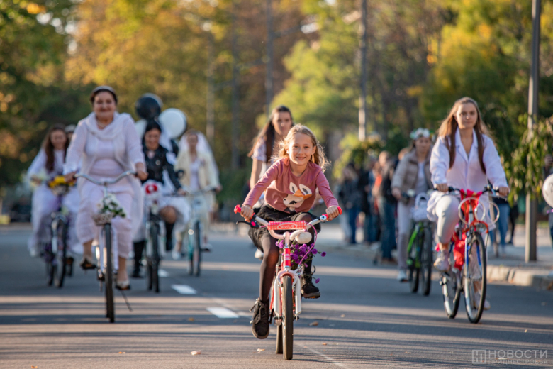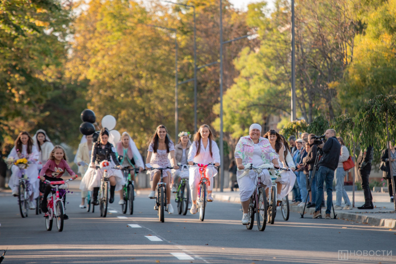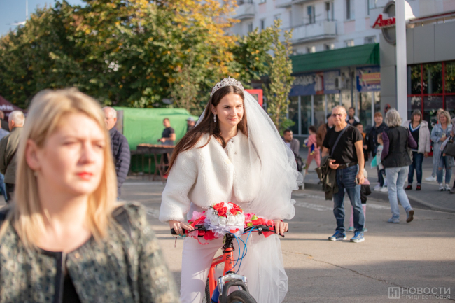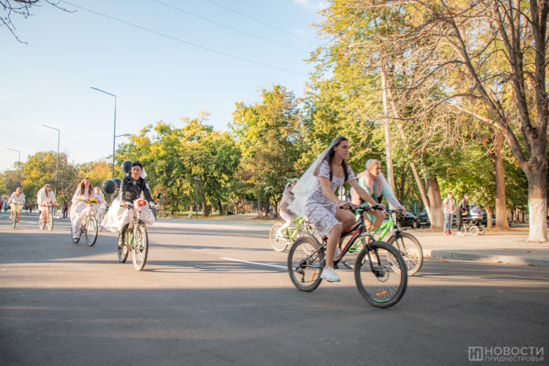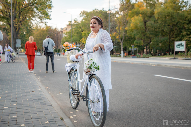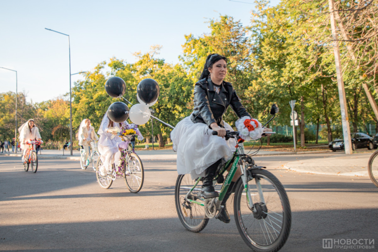 Сразу за бородачами поехали невесты. Тоже впервые в Бендерах. Обязательное условие для участия в пробеге – белое платье, фата и велосипед.