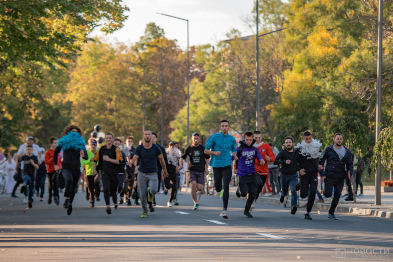 Сразу после этого дали старт забегу бородачей. Мероприятие для города новое, участников собралось несколько десятков. Кто-то бороду рисовал, кто-то приклеивал, но были и те, кто пришёл со своей.