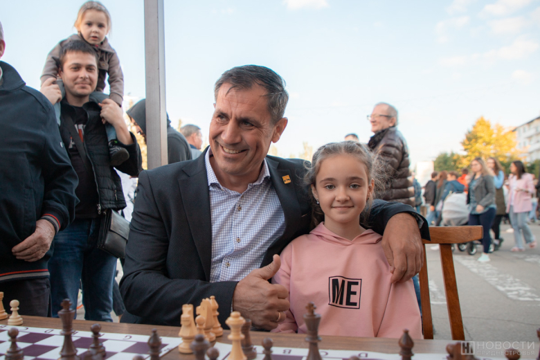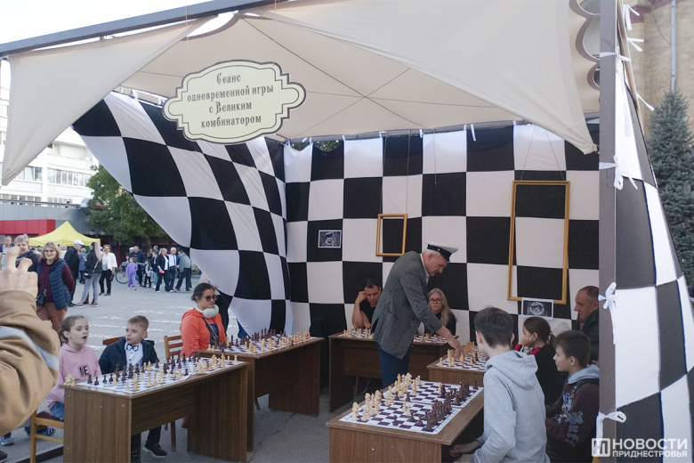 На площади к тому времени праздник шёл вовсю. Прямо посередине великий комбинатор Остап Бендер проводил сеанс одновременной игры в шахматы, а мадам Грицацуева увлечённо гадала горожанкам на картах таро.