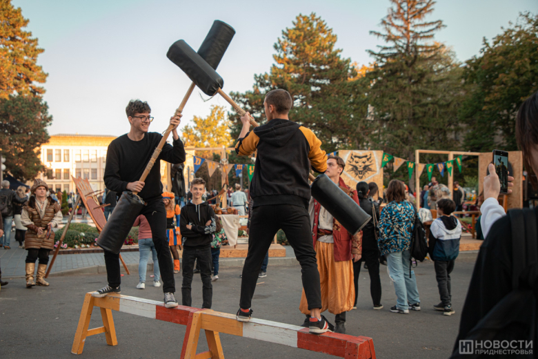 Помимо концерта и праздничного застолья, на площади работала аллея мастеров. Там можно было найти картины, поделки, ручной работы игрушки и даже волшебные палочки из вселенной Гарри Поттера.