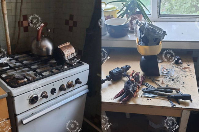 Огнеборцы выяснили, что дым шёл из кухни. Там обнаружили электродвигатель от стиральной машинки на газовой плите.