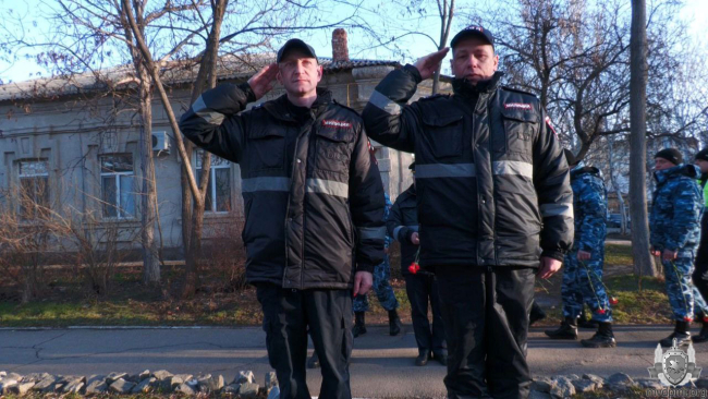 Погибших товарищей правоохранители почтили минутой молчания. К памятной плите возложили алые гвоздики, сообщает пресс-центр МВД.